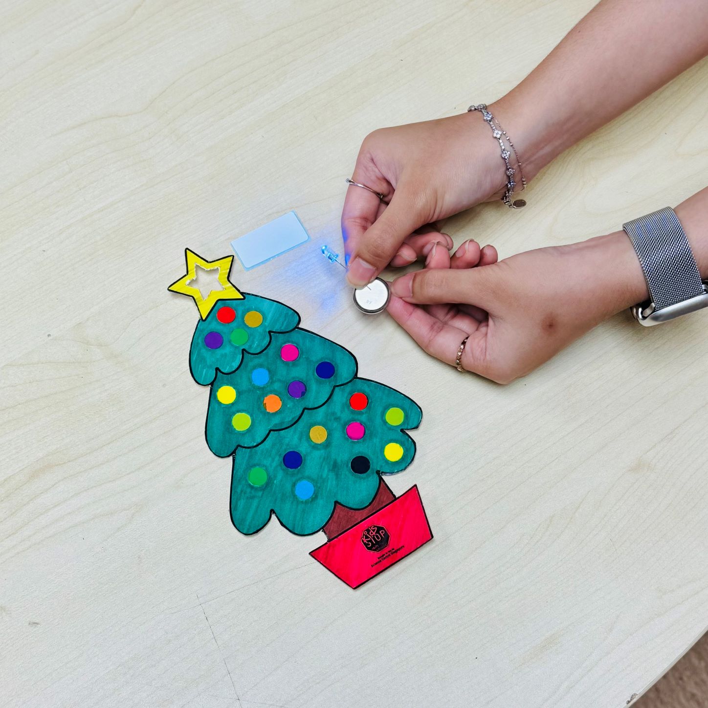 Decorate your mini tree with stickers, make its star twinkle with a little battery magic, and take it home to shine!