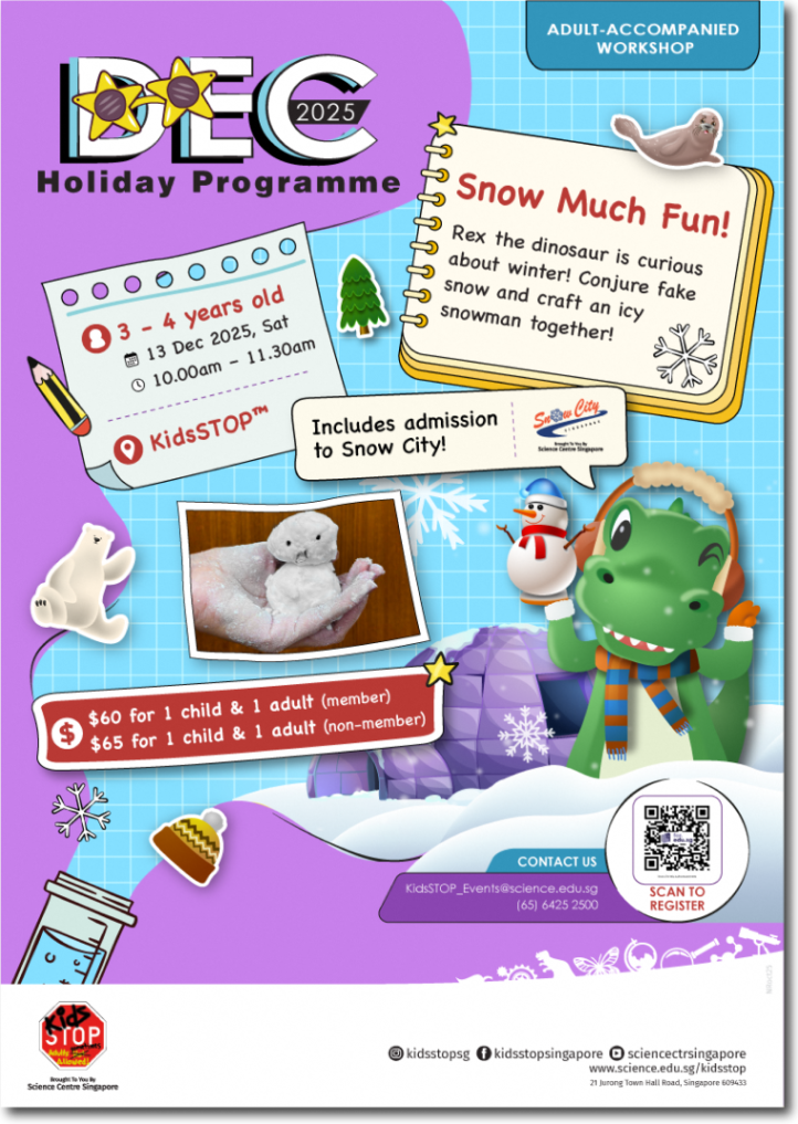 Spark your child's curiosity this holiday period with hands-on workshops where your child can experiment, explore, and learn science through play!